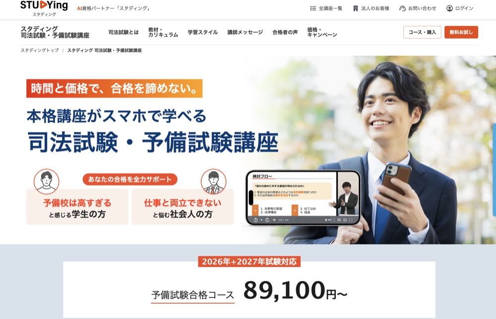 → スタディング。9万円台から予備試験対策を始められる唯一の選択肢です。